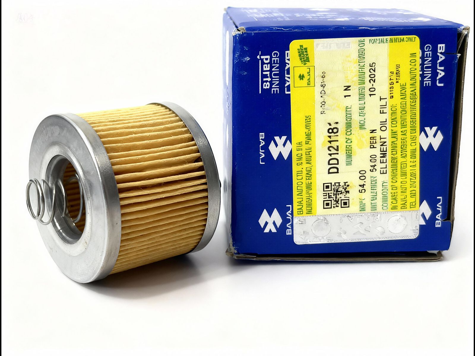 The Bajaj Genuine Element Oil Filter (Part No. DD121181) is a critical component for maintaining the health and longevity of your vehicle’s engine. Specifically engineered for Bajaj motorcycles, this filter is designed to trap harmful contaminants, sludge, and metal debris that accumulate in the engine oil over time. By providing superior filtration, it ensures that only clean oil circulates through the engine, reducing friction and preventing premature wear on vital internal parts. Using this 100% authentic Bajaj part guarantees a perfect fit and reliable operation, helping your engine run smoother and more efficiently while extending its overall lifespan.
